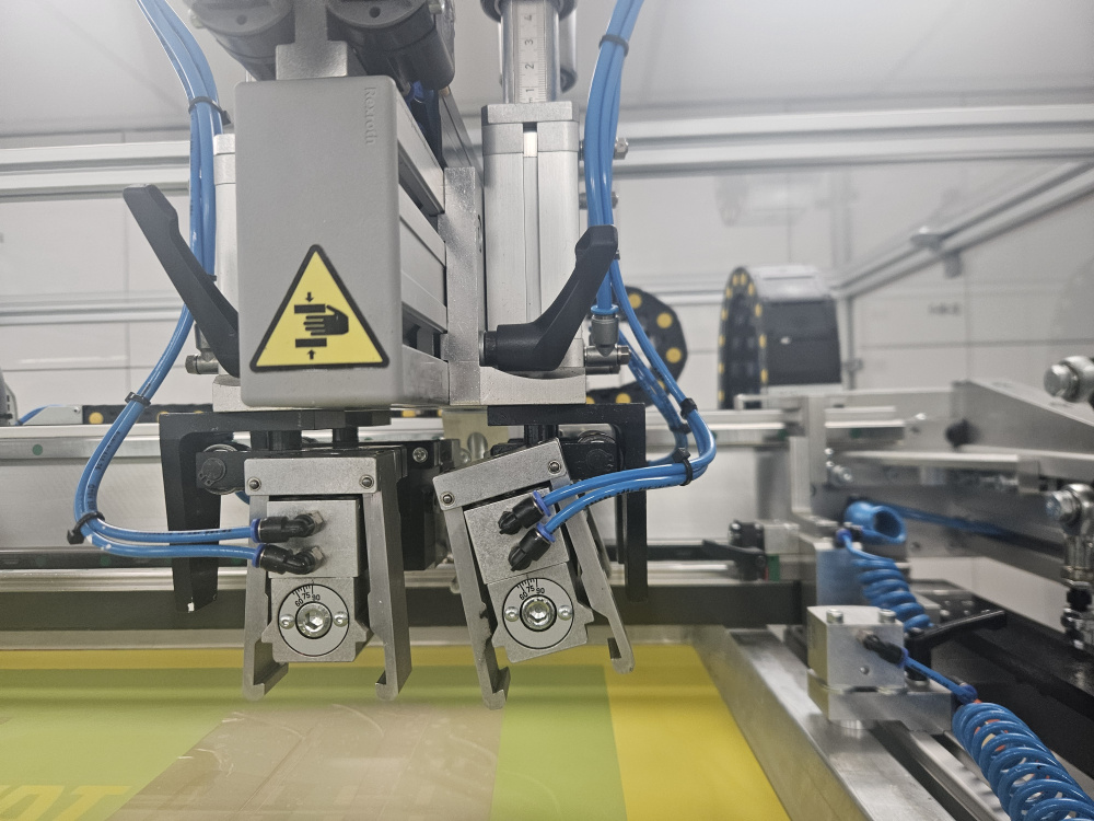 increases productivity up to 30% and print quality as well as renders operator’s service easier as he only takes care to load printed materials. Take-off could be performed from any position of the vacuum table.