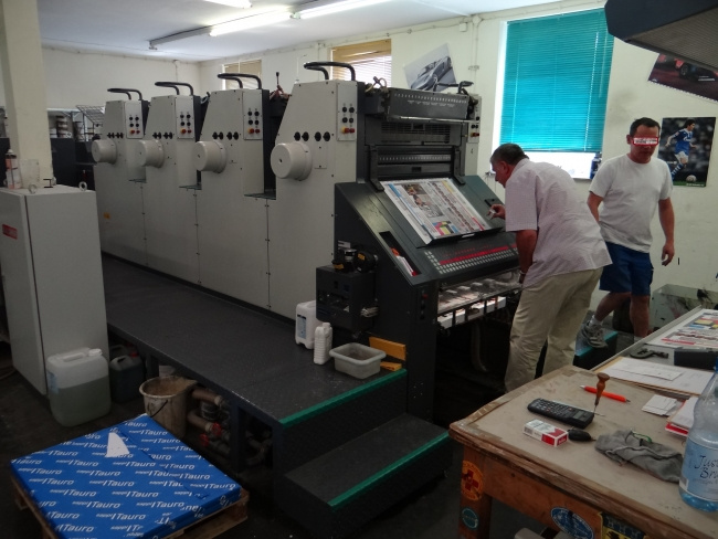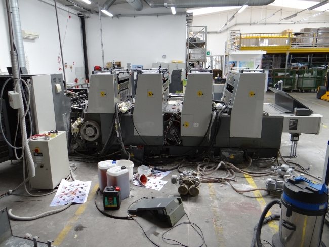 Together with our buyer, we viewed and tested in small German printing house modern 4 color printing machine model Roland 204 E